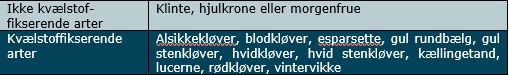 End videre har der været et stort ønske om at kunne bruge kvælstoffikserende arter i efterafgrødeblandinger for at tilføre kvælstof til systemet ved fiksering fra atmosfæren, og samtidigt øge jordens frugtbarhed.