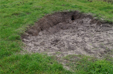Her er et eksempel på et ”tyrehul”, som er lavet på et græsareal, som bliver afgræsset.