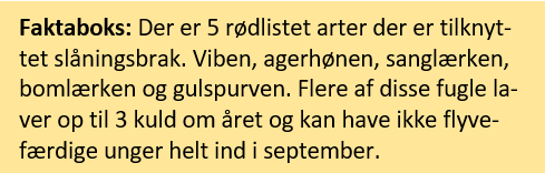 Du skal slå dine brakmarker mindst 1 gang om året mellem d. 1. august og 15. september. Reglen er der for at beskytte vildtet og agerlandets fugle i deres yngleperioder. Man slår arealerne for at undgå at marken springer i skov.