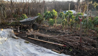 Fjern gamle planter fra køkkenhaven og dæk evt. noget jord med plastik eller glas, så den er klar til at lægge de tidlige kartofler.
