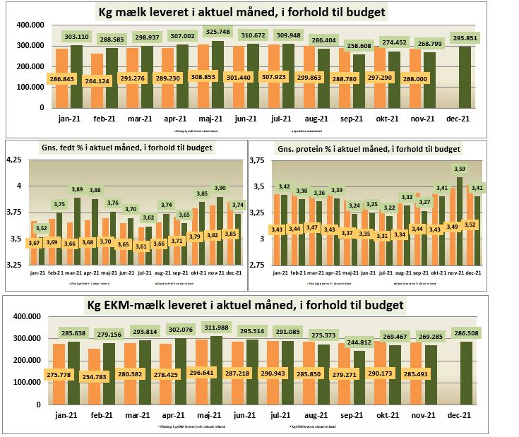Kunne du godt tænke dig en månedlig eller kvartalsvis oversigt over nøgletallene på din bedrift? Så er værktøjet ’Månedsopfølgning’ noget for dig. Vi har kørt med produktet i mange år og mange har allerede god gavn af det. Vi indtaster dine månedlige produktionstal (mængde mælk leveret, fedt, protein, celletal, ydelse fra ydelseskontrol mm), dyreomsætning samt fødte og døde kalve for blot at nævne nogle få tal. Herudover kan der også indgå endagsfoderkontroller samt mælkeafregningen. Alt holdes op imod årets prognose, så det giver et grafisk overblik af, hvor langt I er nået på jeres besætning. Din rådgiver kommenterer den hver gang og den giver et godt grundlag for at vende, hvordan udviklingen går på ejendommen i forhold til det forventede. Kontakt os, hvis du ønsker at vide mere.