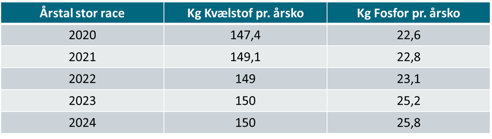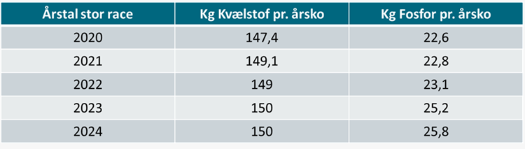 Reduceret fosfor: 1,6 - 3,1 kg P/årsko