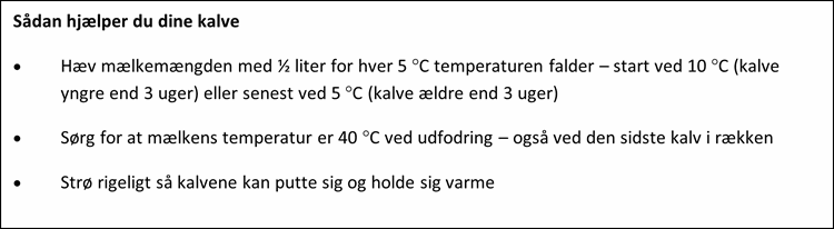 Falder temperaturen til frysepunktet, anbefales det at tildele 1 liter ekstra mælk per kalv per dag.