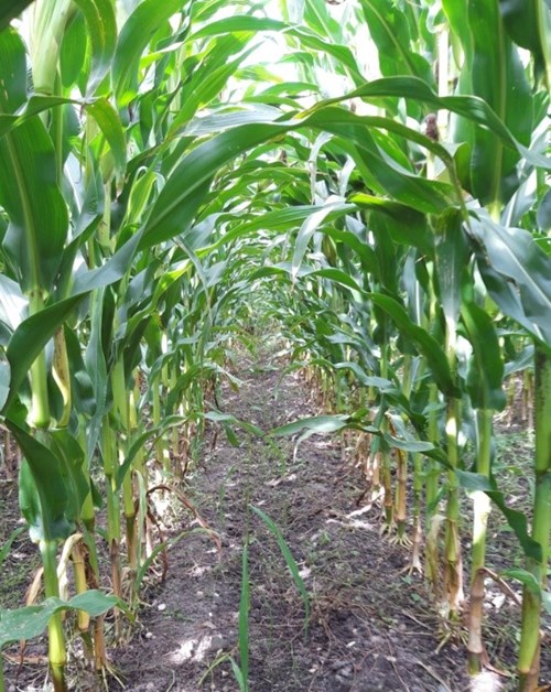 Vi ser at der stadig står en del grønne og friske majsplanter, hvor kolben er godt på vej, rundt omkring og anbefalingen er at lade disse stå til kolbe-, og kernemajs.