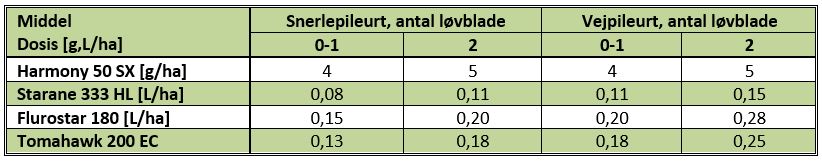Tabel 2 Effekt mod snerle- og vejpileurt