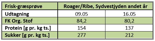 Tabel 1 Frisk-græsprøve for Roager/Ribe (Kilde: SEGES)