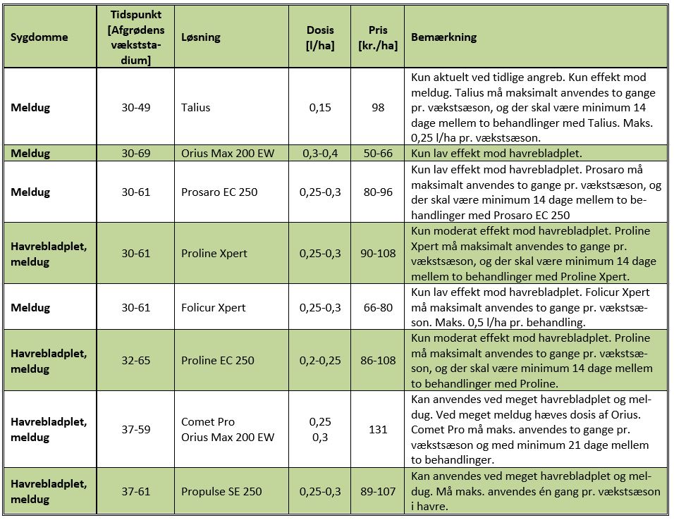 Tabel 1 Løsningsforslag til svampebekæmpelse i havre (Kilde: SEGES)