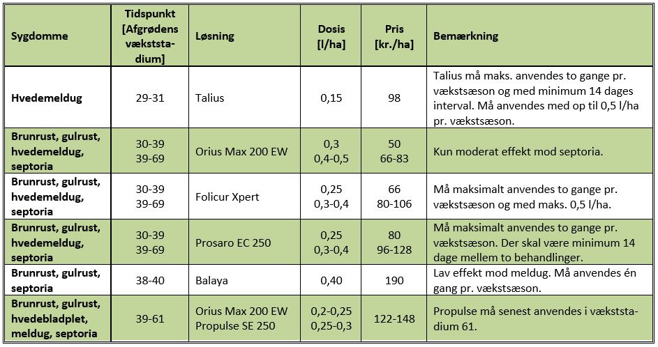 Tabel 2 Løsningsforslag til svampebekæmpelse i vårhvede (Kilde: SEGES)