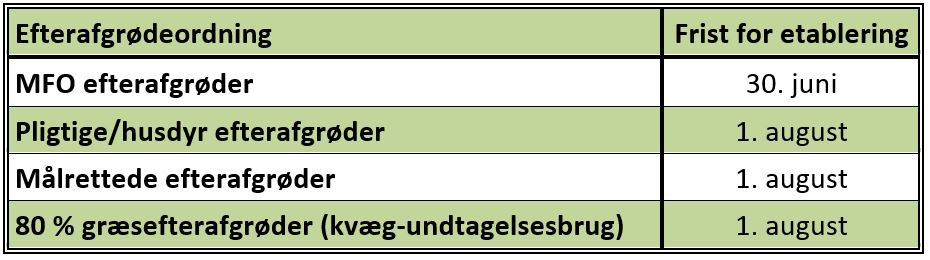 Tabel 1 Frist for etablering af græsefterafgrøder