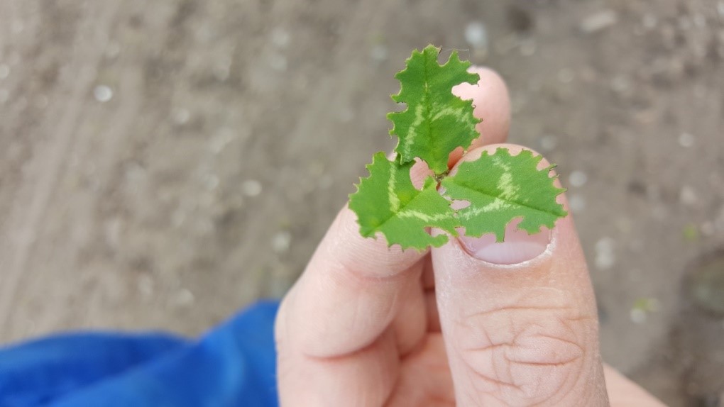Billede 4 Hvidkløver med bladgnav af stribet bladrandbille (Foto: SAGRO)