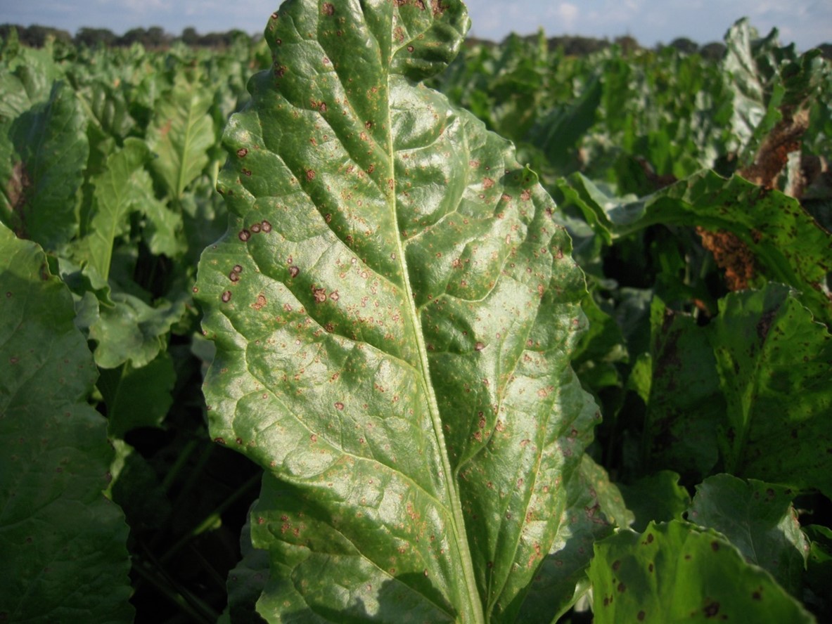 Billede 5 Blad af foderroe angrebet af såvel Cercospora som bederust (Foto: Thomas Harbo, SAGRO)