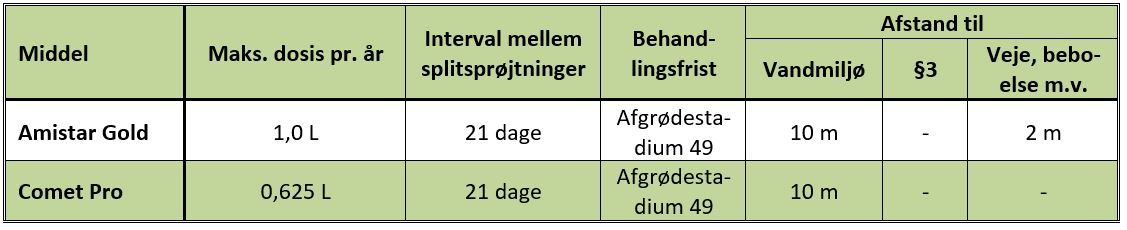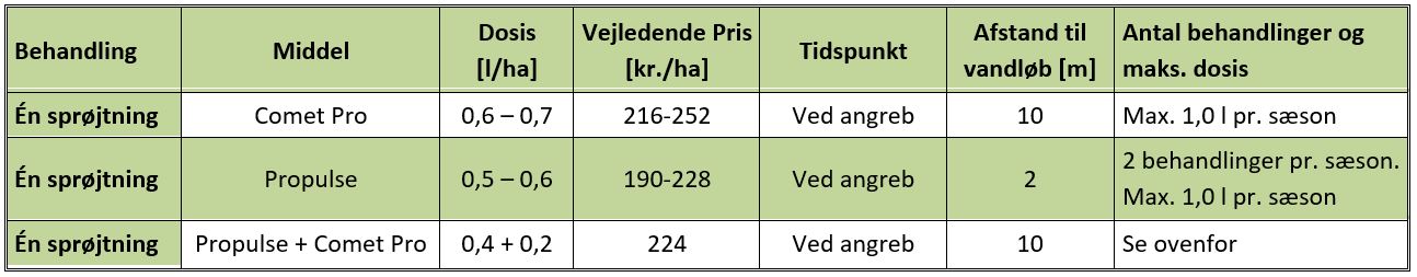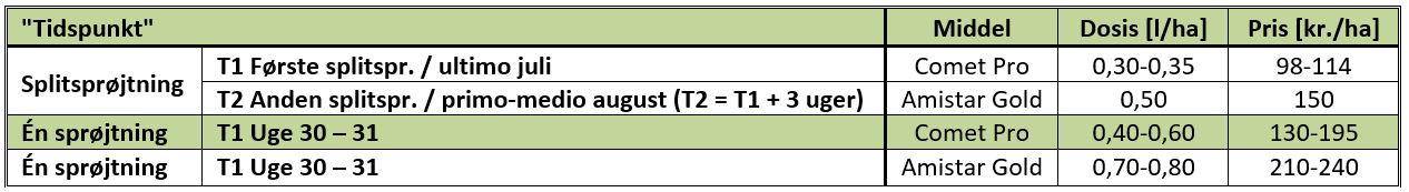Tabel 3 Bekæmpelsesstrategi for bladsvampe i foderroer