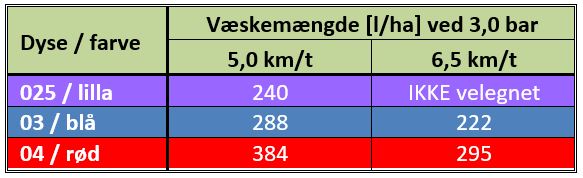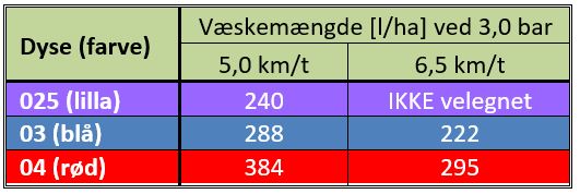 Tabel 2 Sprøjteteknik mod svampe (og evt. bladlus) i majs.