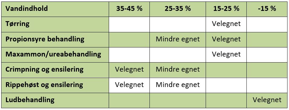 Tabel 3 Oversigt over velegnede metoder til konservering af korn (Kilde: Landbrugsinfo)