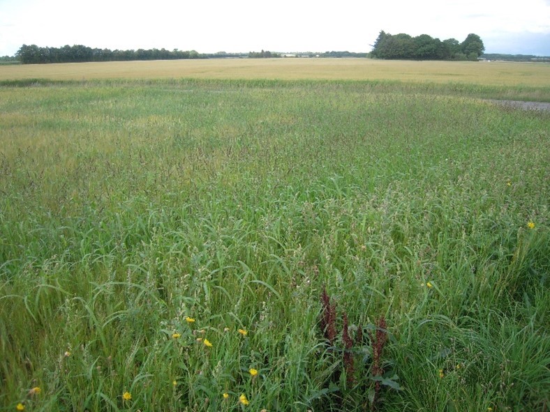 Billede 2 Alm. Hanespore findes i mange marker med vårsæd, hvor afgrødekonkurrencen er mindre – f.eks. i markhjørner, i kørespor eller omkring brønde og hydranter (Foto: Thomas Harbo, SAGRO)