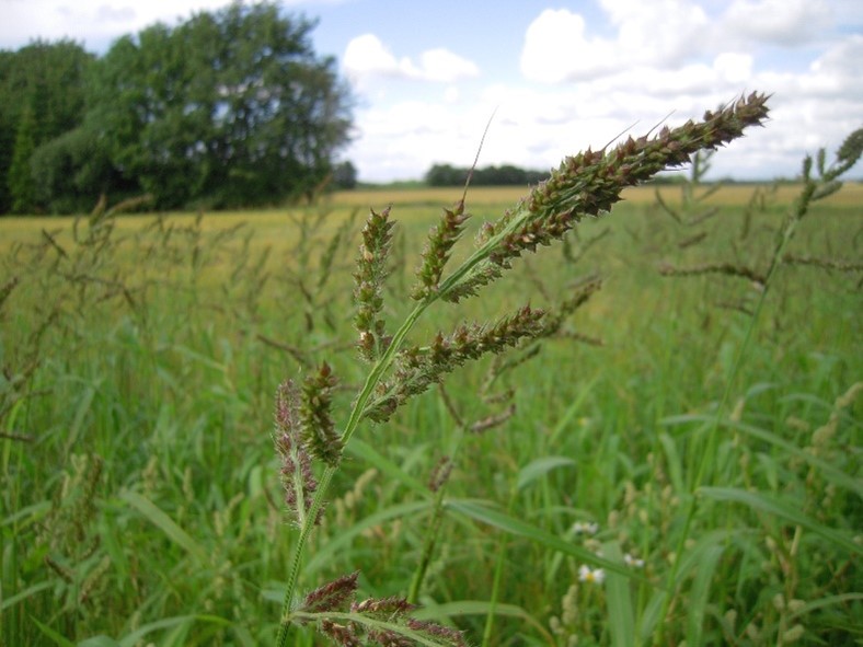 De fleste kender nok desværre ukrudtsgræsset alm. hanespore, som i de senest år har bredt sig voldsomt på mange arealer. Størst problemer volder det i åbne afgrøder som majs og roer, der yder ukrudtet ringe konkurrence i forår og forsommer, men det kan også findes i mange kornmarker, hvor der i foragre og spor er nedsat afgrødekonkurrence. Alm. hanespore bliver anset for at være en af de værste ukrudtsarter – om ikke den værste – på verdensplan. Der sker stor spredning fra majsmarker, men der sker også en vis spredning fra korn.
