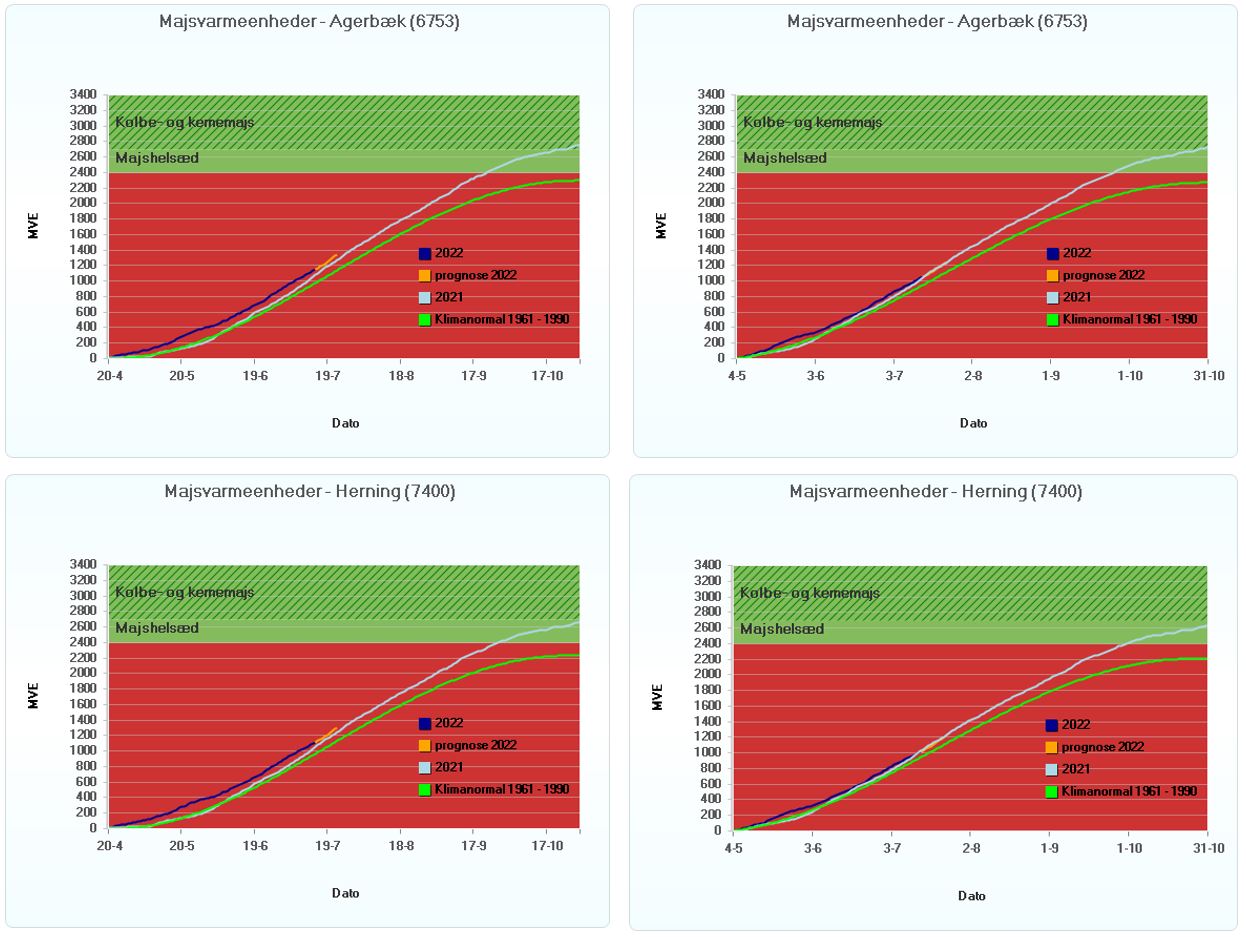 Figur 1 Majsvarmeenheder (MVE) for majs i Agerbæk og Herning, sået 20. april henholdsvis 4. maj.