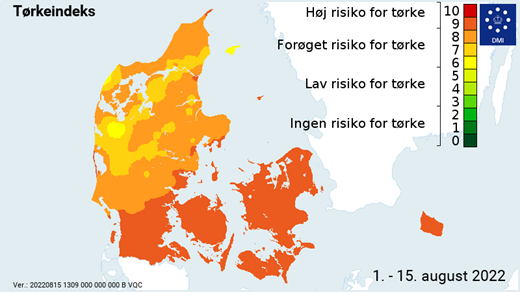 Figur 1 Tørkeindeks den 16. august (Kilde: DMI)
