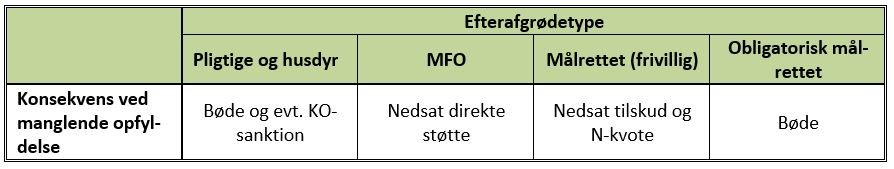 Tabel 5 Konsekvens ved manglende opfyldelse af efterafgrøde (Kilde: Landbrugsstyrelsen)