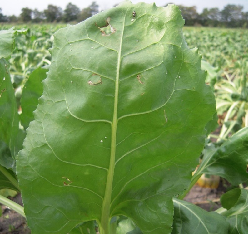 Billede 2 Roeblad med bladmine fra bedefluens gnav (Foto: Thomas Harbo, SAGRO)