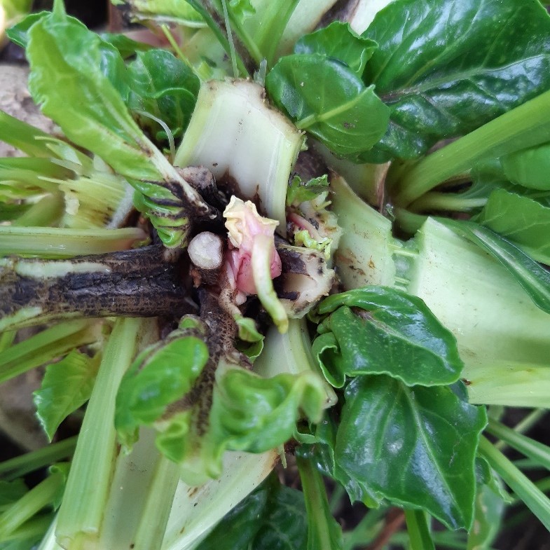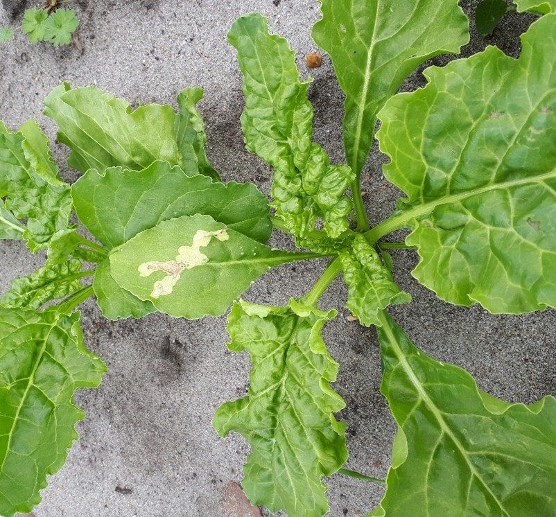 Billede 3 Roeplante med begyndende symptomer på bormangel (Foto: Mogens K. Andersen, SAGRO)