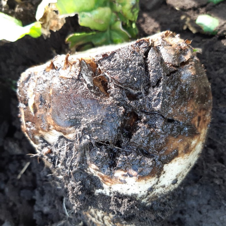 I løbet af de seneste uger har vi også set flere marker med bormangel. I nogle marker endda kraftig mangel med alvorlige symptomer på roerne. Fælles for de angrebne marker er, at de ikke tidligere er behandlet med bor. Det har været tørt i nogen tid nu, og det er sikkert den udløsende faktor. Det kan endnu betale sig at behandle med bor, selvom vi nu er tættere på en efterårsperiode, hvor der normalt er god sikkerhed for nedbør. Det gælder dog om at få roernes vækst i gang nu, hvor produktionen potentielt er allerstørst. Bormangel giver også tab af det tørstof, som allerede er indlejret i roden.