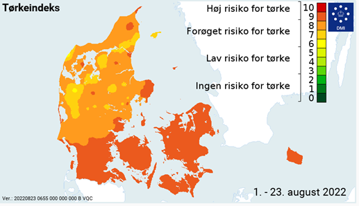 Figur 2 Tørkeindekset for 23. august viser udbredt tørke over hele landet.