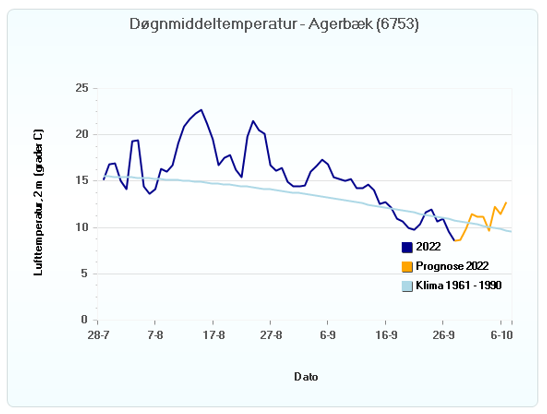 Figur 1 Døgnmiddeltemparatur for Agerbæk (Kilde: SEGES)