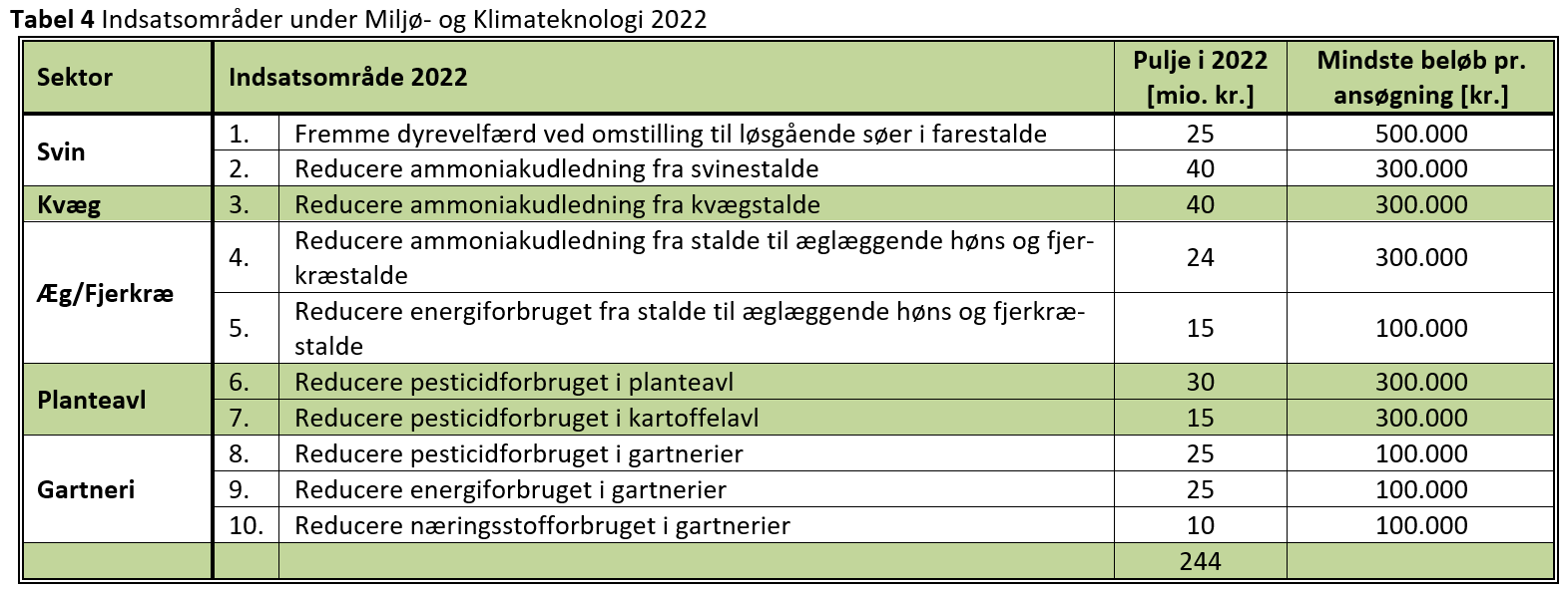 Den årlige ansøgningsrunde om tilskud til indsatsområderne inden for Miljø- og klimateknologi 2022 er åben frem til den 10. januar 2023. Der kan søges tilskud til flg. 10 indsatsområder: