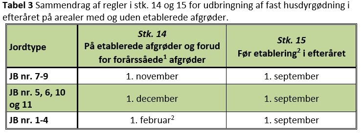 Nedenfor er uddrag fra §9 i Gødningsanvendelsesbekendtgørelsen (BEK nr. 1551 af 02/07/2021):