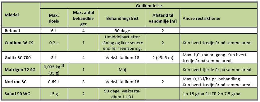 Tabel 2 Godkendte ukrudtsmidler i foderroer. Se også tabel 3