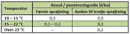 Tabel 5 Retningslinjer for dosering af penetreringsolie afhængig af