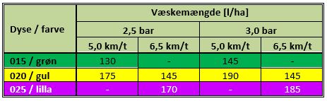Tabel 6 Sprøjteteknik til bladsprøjtning i roer