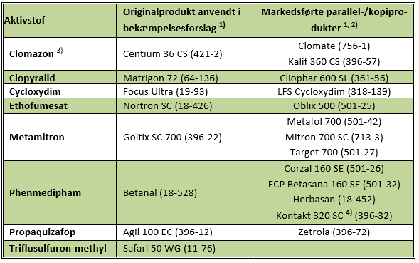 3) Clomazon-parallel- og kopiprodukterne er godkendt til mindre anvendelse. Du finder godkendelserne her.