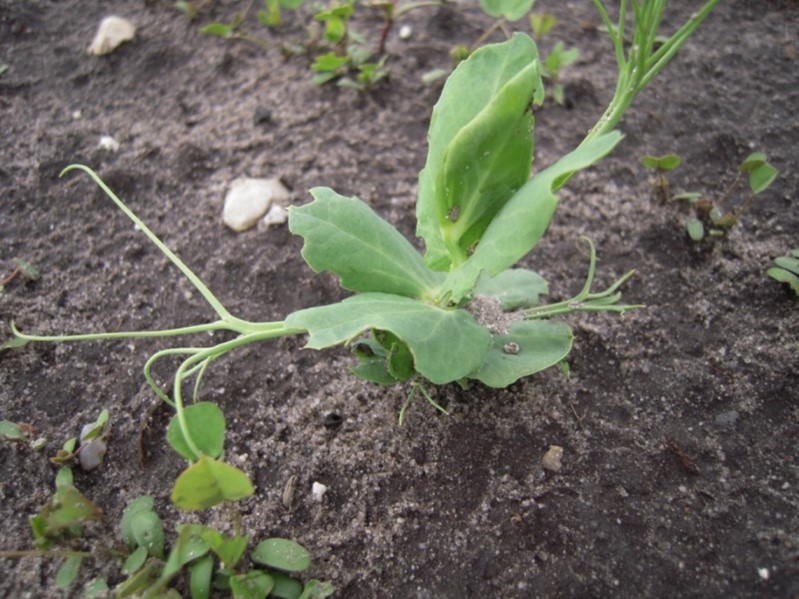 Billede 4 Ærteplante med gnav af stribet bladrandbille. I denne