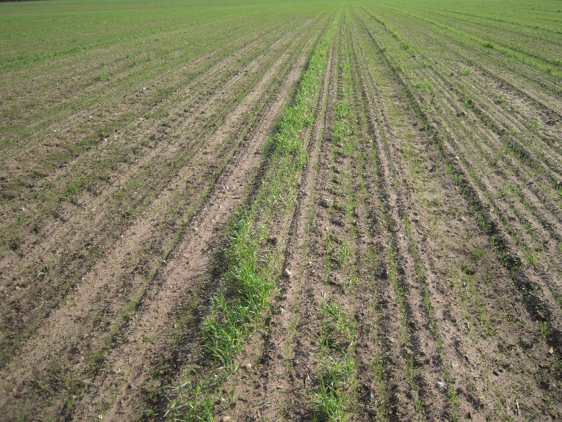 Billede 2 En noget nær ideel nyudlagt mark. Her er der kun meget lidt spildkorn at se. Dæksæd af vinterhvede og udlægsblanding er blandet sammen og rillesået. (Foto: Thomas Harbo, SAGRO)