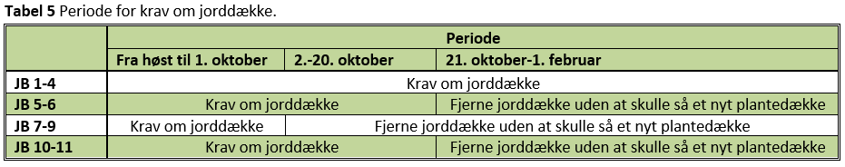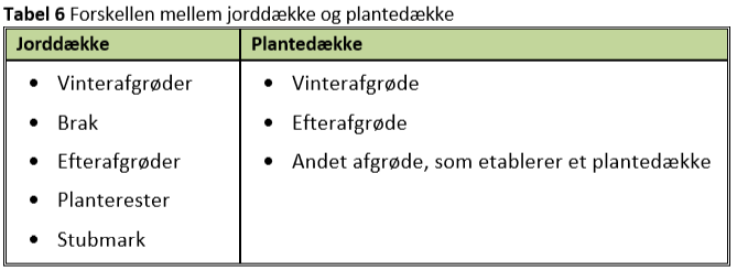 Kravet om jorddække er sat op efter jordbundstype. Der er dog visse undtagelser og faldgruber, som vil blive omtalt i de kommende afsnit.