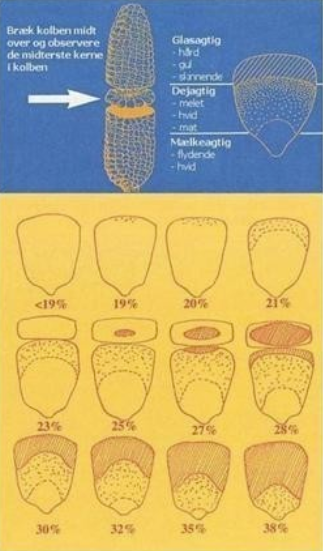 Figur 1 Kernevurdering. Metode til vurdering af tørstofindhold på baggrund af kernefarve og konsistens (Kilde: SEGES).