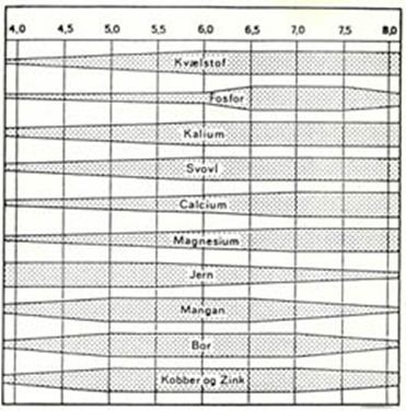 Figur 2 Tilgængelighed af jordens næringsstoffer er