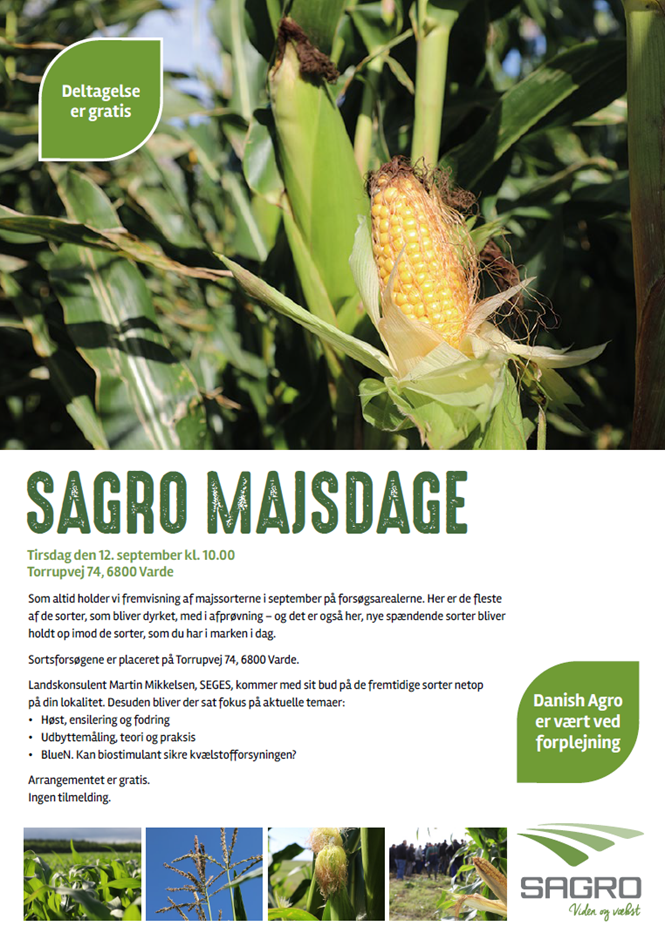 Ligesom i de foregående år tilbyder SAGRO Kvæg at lave tørstofanalyser af majsplanter til bestemmelse af tørstofindholdet. Bestemmelse af tørstofprocenten er den bedste indikator for majsen udvikling, og der kan være forskel fra mark til mark afhængig af såtidspunkt, sort, gødningsniveau og bonitet m.v. Ved at kende tørstofindholdet kan høsten planlægges, og de mest tørre majs kan ligges i bunden af siloen. Viser tørstofanalysen, at der er længere tid til høst, kan du indtaste din tørstofanalyse i majshøst-prognosen i CropManager, og du får et godt bud på det optimale høsttidspunkt i dine marker.