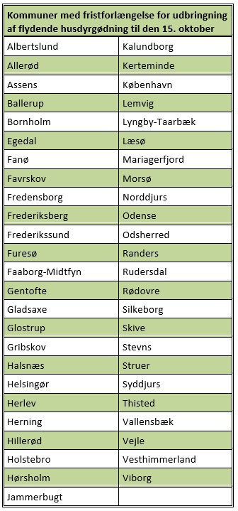 Tabel 3 Kommuner med fristforlængelse for udbringning af flydende