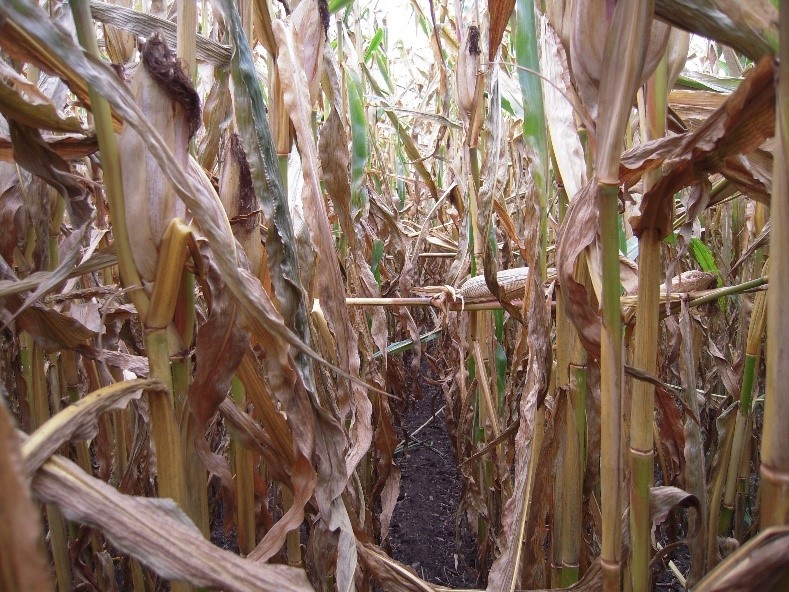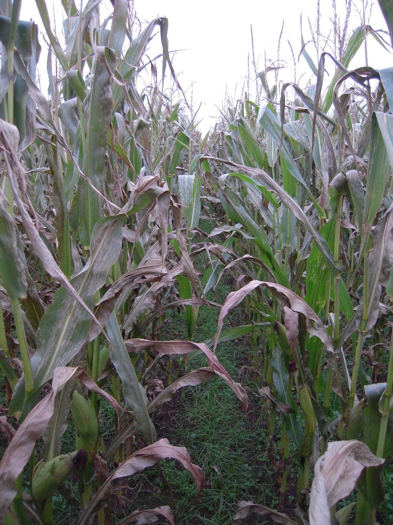 Den seneste uge har budt på nedbør, og nogle har endda fået meget store mængder. Er jorden stadig i stand til at afdræne, når nedbøren falder, har det kun kortvarig betydning, men er jorden allerede mere eller mindre vandmættet, kan større nedbørsmængder få betydning for afgrøden på flere måder. Dels er der selvfølgelig udfordringen med at færdes på arealerne med tunge maskiner og få høsten bjærget, dels vil majsen ofte blive angrebet af fusariumsvampe, som kan forårsage afgrødens afvisning i løbet af en uges tid. Fænomenet kaldes "Fusarium stalk rot", på dansk "Fusarium-stængelråd". Fusarium-svampen blokerer saftstrømmen i planten ved at angribe i bladhjørner. Angreb fremmes af flere dage med overskyet vejr og mediumhøje temperaturer i forbindelse med nedbør og vandmættet jord; ret præcist de forhold vi havde i sidste uge. Der er sortsforskel på angrebsgraden.