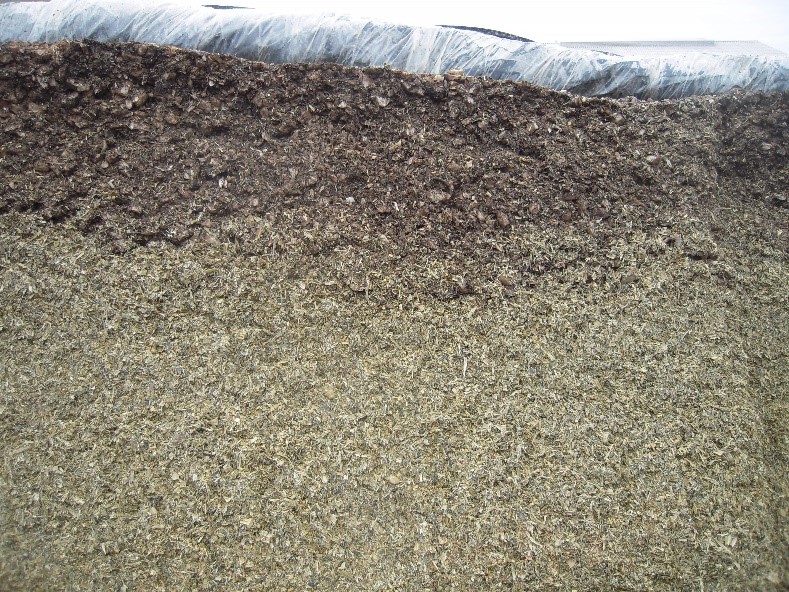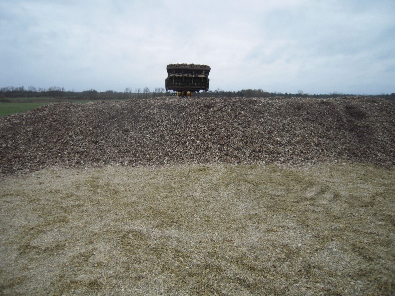 Billede 1 og 2 Roer knuses her direkte ovenpå majsensilage. De skal ikke køres sammen og ensileres let (Foto: Thomas Harbo)