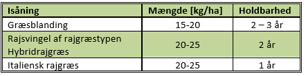 Er marken allerede tvivlsom nu, skal du ikke forvente mirakler, og du bør derfor planlægge at lægge marken om til næste sæson. Mest aktuelt vil det være at reparere mindre pletter eller områder med tynd plantebestand i en i øvrigt god nyudlagt mark fra sidste år. Vil du i en sådan mark prøve med en reparation, der muligvis kan holde i flere sæsoner, skal du vælge at iså 15 – 20 kg/ha af den græsblanding, marken er etableret med. I ældre marker er udsigten til succes noget mindre, men vil du på trods heraf prøve at øge græsmarkens produktion, skal du i sådanne marker iså 20 – 25 kg/ha af en hurtigvoksende græsart som italiensk rajgræs, rajsvingel af rajgræstypen eller evt. hybridrajgræs. Italiensk rajgræs holder kun denne sæson, mens hybridrajgræs og rajsvingel af rajgræstypen evt. også kan ligge til produktion næste år, hvis isåningen undtagelsesvist lykkes rigtig godt.