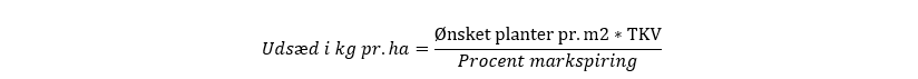 I tabellen nedenfor kan du også aflæse den vejledende udsædsmængde ved 85 % markspiring.