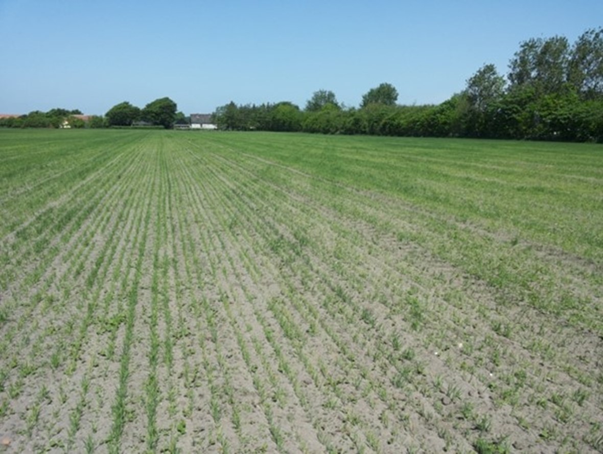 Billede 1 Vårbyg har fået en dårlig start på vækstsæsonen. Gyllen er placeret for dybt,