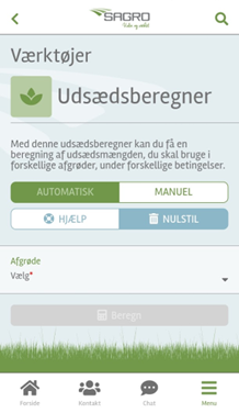 Figur 3 Udsædsberegner i SAGRO's App (Kilde: SAGRO)