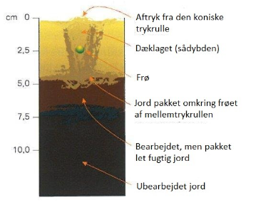 Figur 4 Tværsnit af de øverste 10-12 cm af såbedet til roer. På