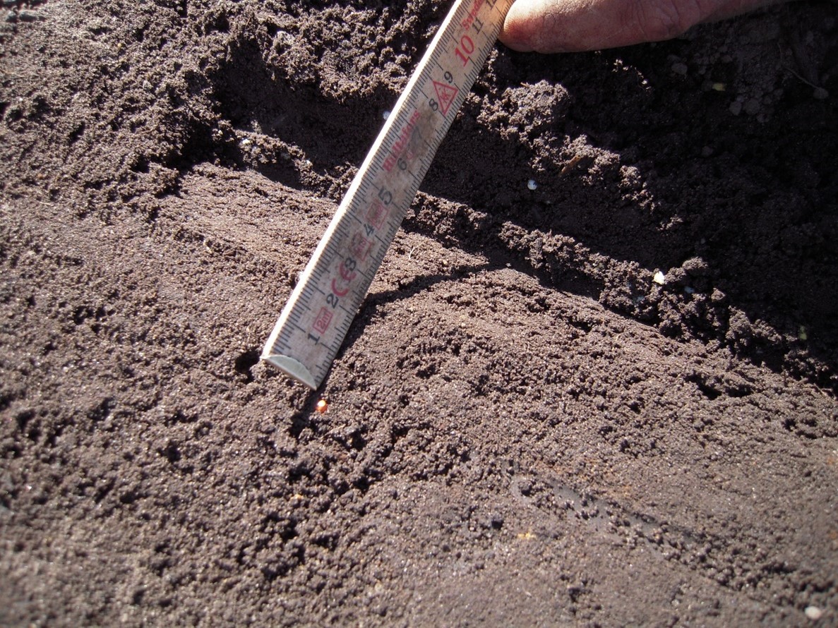 Billede 3 Roefrø og gødning. Gødningsstrengen ligger ca. 5 cm fra og 3 – 4 cm under roefrøene