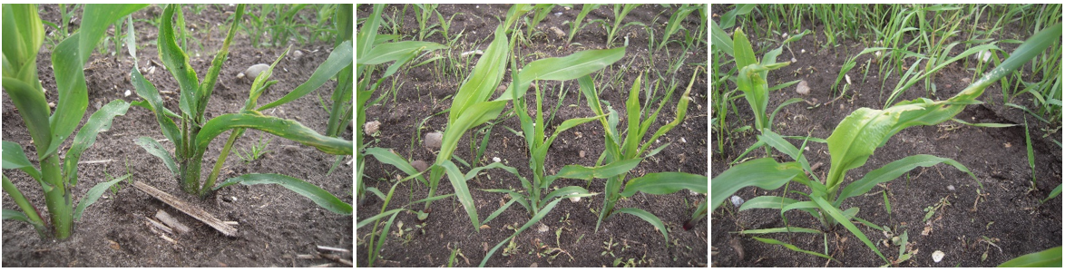 Billede 2-4 Skader af fritfluer i majs (Fotos: Thomas Harbo, SAGRO)